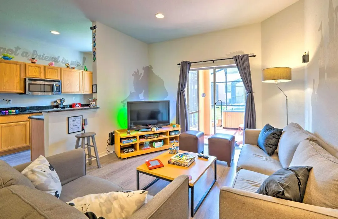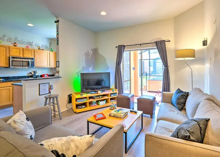 Disney-Inspired Townhome With Private Hot Tub! Orlando villa offers proximity to such city sites as the creative Mortem Manor Haunted Attraction, located only a 6-minute walk away.